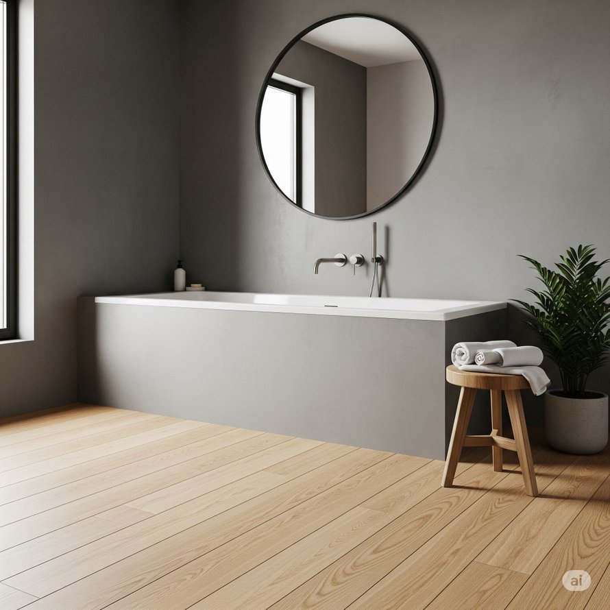 - Holz (mit spezieller Behandlung): Bestimmte Holzarten wie Teak oder Eiche können bei fachgerechter Verlegung und Versiegelung auch im Bad eingesetzt werden, um eine warme und natürliche Atmosphäre zu schaffen. Dies ist jedoch eher für Bereiche außerhalb der direkten Nasszone zu empfehlen.