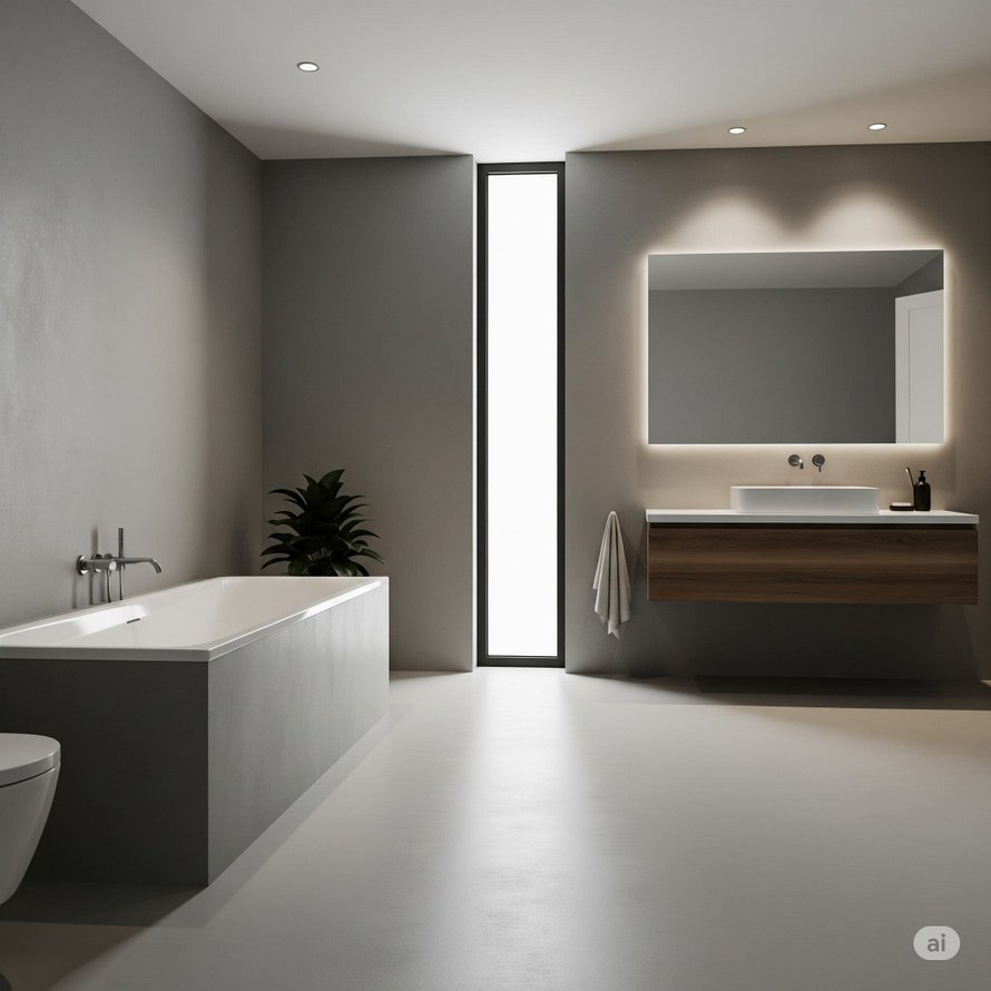 Ein Badezimmer, das ohne Fugen gestaltet ist, erzeugt den Eindruck eines größeren Raumes, vornehmlich in den oft begrenzten Dimensionen eines Badezimmers. Die kontinuierlichen Wand- und Bodenflächen sorgen für ein ununterbrochenes Erscheinungsbild, wodurch der Raum visuell erweitert wird.